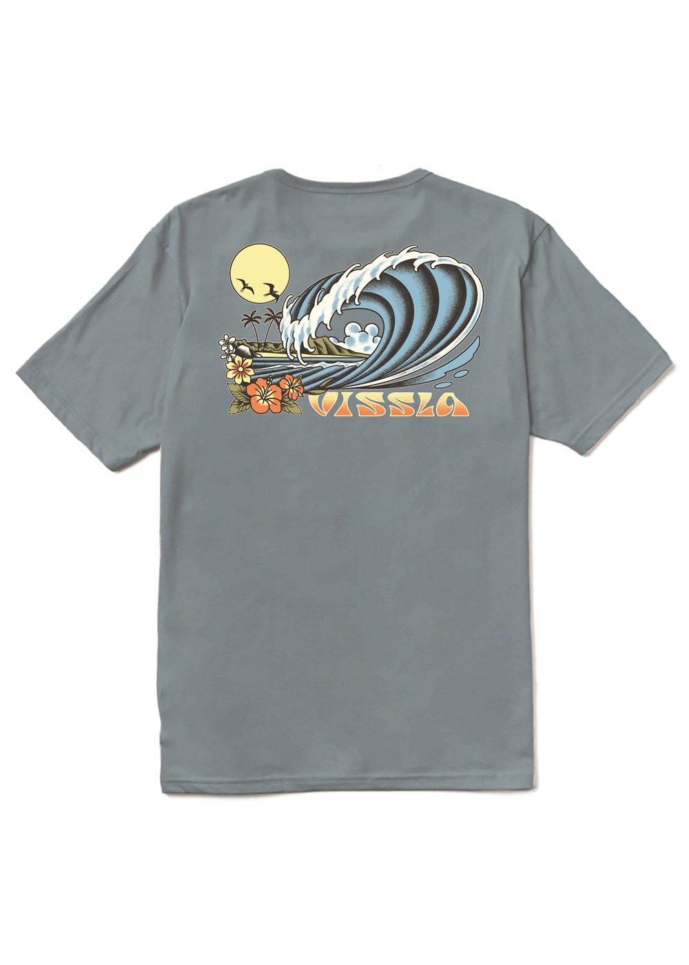 Ride the wave of comfort. This modern fit tee features side-seamed construction with 100% GOTS certified organic cotton. Vintage washed for immediate softness with screen-printed art and our iconic flag label. 30 singles jersey.