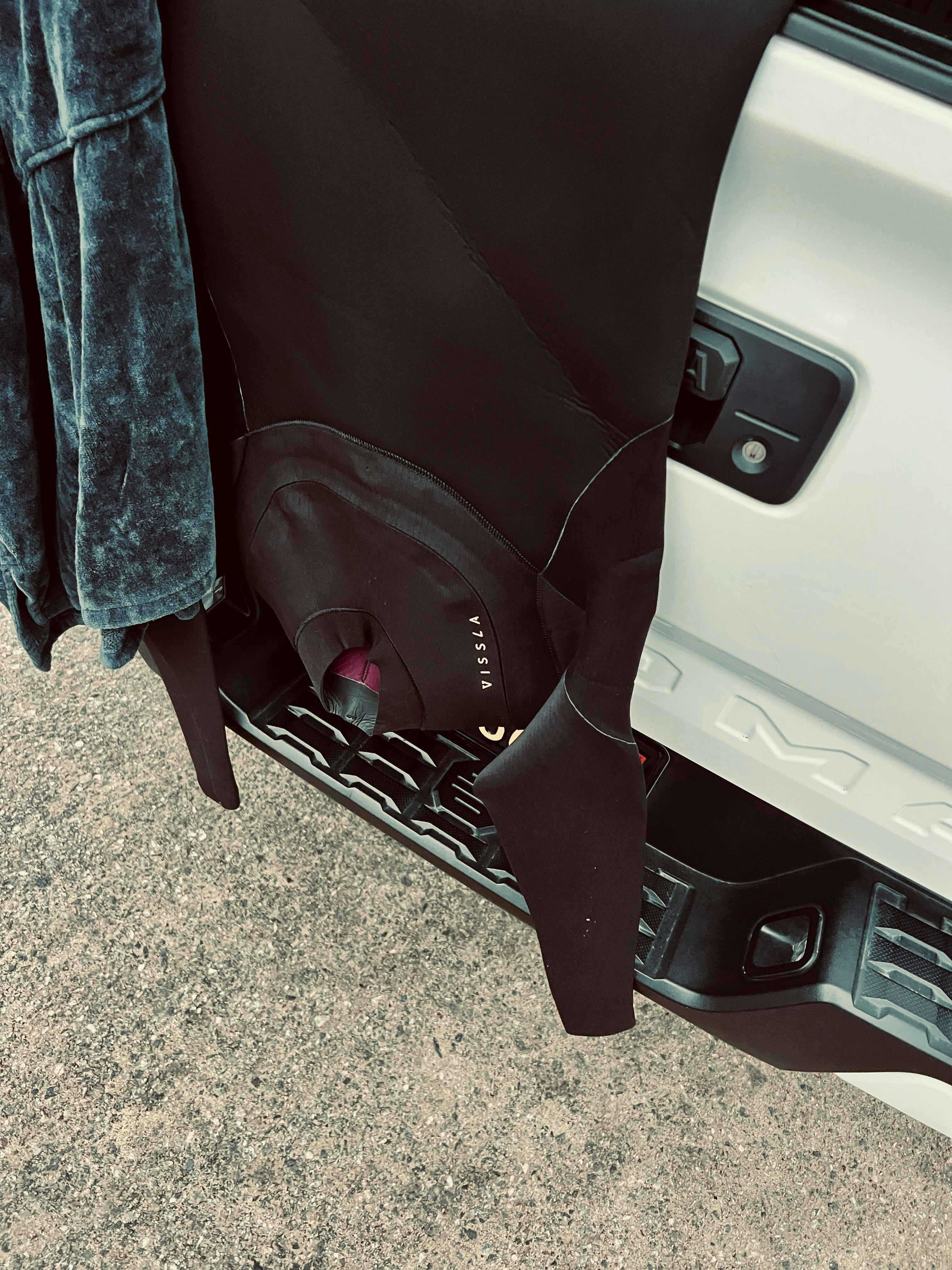 • Hang dry in a cool shaded area and avoid hanging in direct sun light. When changing, avoid standing on the wetsuit